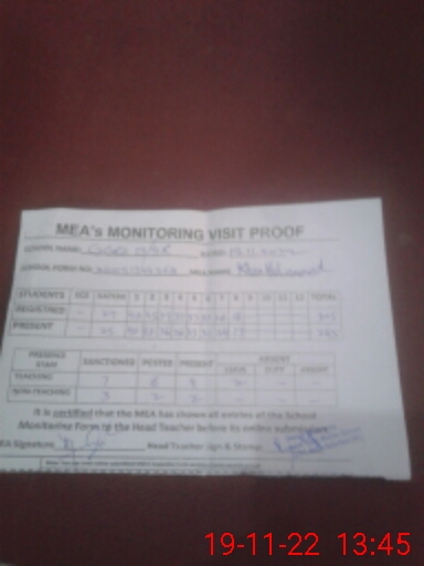| Attendance Register | Head Teacher | MEA with School | Visit Proof |