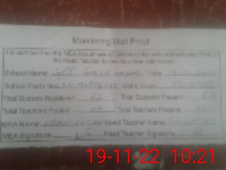 | Attendance Register | Head Teacher | MEA with School | Visit Proof |