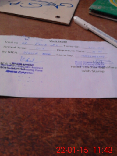 | Monitoring Date: 22-01-2015 | Start Time: 22-01-2015 10:56 AM | End Time: 22-01-2015 11:44 AM | Name of MEA: Wa**** Ah**** (R**** | |