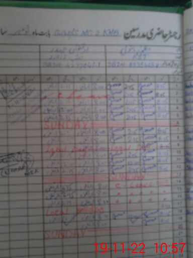 | CNIC | Full Name | Designation | R/C | Absence During Last Calender Month |