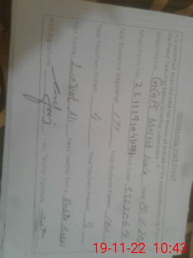 | EMIS Code: 33230619 | Name of School: GGPS MASJID WALA | |||