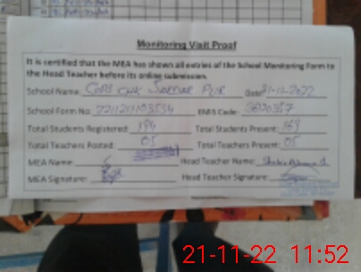 | Attendance Register | Head Teacher | MEA with School | Visit Proof |