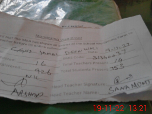 | EMIS Code: 31340037 | Name of School: GGHS JAMAL DIN WALI | |||