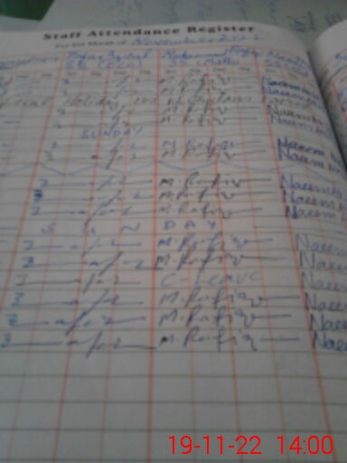 | Attendance Register | Head Teacher | MEA with School | Visit Proof |
