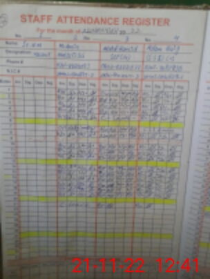 | CNIC | Full Name | Designation | R/C | Absence During Last Calender Month |