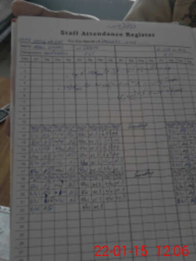 | CNIC | Full Name | Designation | R/C | Absence During Last Calender Month |