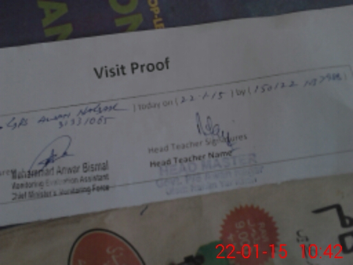 | Attendance Register | Head Teacher | MEA with School | Visit Proof |