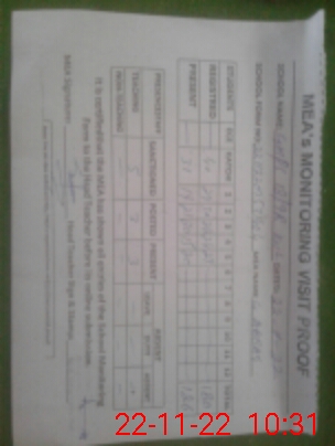 | Attendance Register | Head Teacher | MEA with School | Visit Proof |