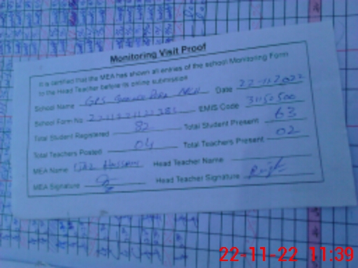 | Attendance Register | Head Teacher | MEA with School | Visit Proof |