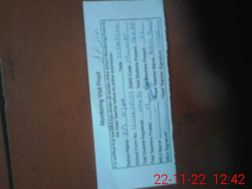| Attendance Register | Head Teacher | MEA with School | Visit Proof |
