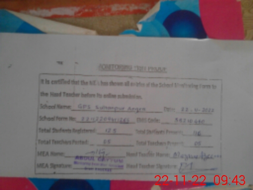 | EMIS Code: 38210460 | Name of School: GES SULTAN PUR ANGRA | |||