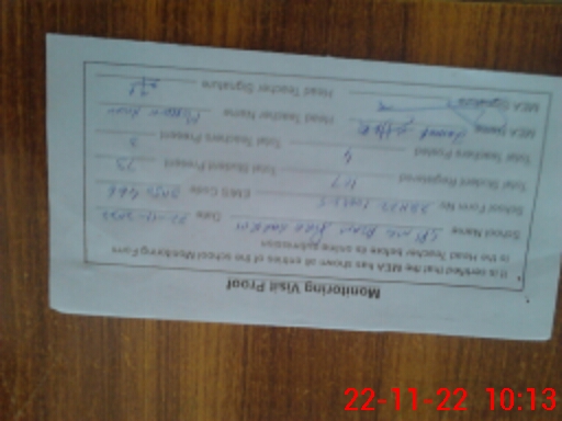 | Total no. of Classrooms: 3 No. of Classrooms Used for Teaching: 3 No. of Classrooms Storing Old Furniture, FTBs, etc: 0Comments if Any: N S B RECORD NOT PROVIDED AT THE TIME VISIT |