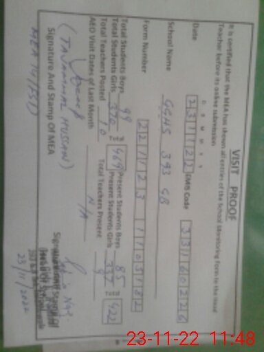 | Certified that this School was Inspected by the Undersigned MEA/DMO Today and the Information Stated Above is as Per Record. | |||||