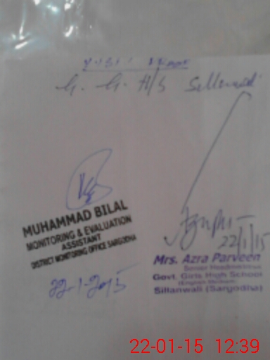 | EMIS Code: 38440026 | Name of School: GGHS SILLANWALI | |||