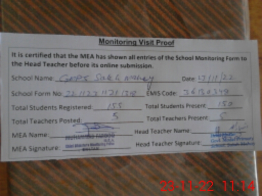 | EMIS Code: 36130348 | Name of School: GMPS SALEH MEHAY POST BOX NAWAB PUR | |||