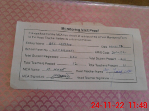 | Attendance Register | Head Teacher | MEA with School | Visit Proof |