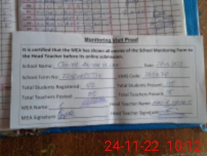 | Attendance Register | Head Teacher | MEA with School | Visit Proof |