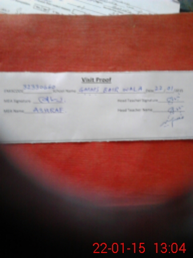 | Attendance Register | Head Teacher | MEA with School | Visit Proof |