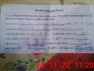 | Attendance Register | Head Teacher | MEA with School | Visit Proof |