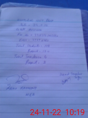 | Attendance Register | Head Teacher | MEA with School | Visit Proof |