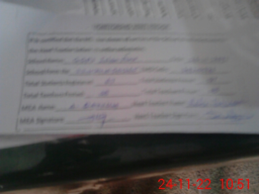| Monitoring Date: 24-11-2022 | Start Time: 24-11-2022 10:17 AM | End Time: 24-11-2022 10:55 AM | Name of MEA: HA**** AB**** QA**** | |