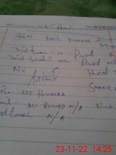 | Remarks (Use Separate Page if Required): NO RECORD GIVEN TO MEA TEACHER HUMERA ABSENT | |||||