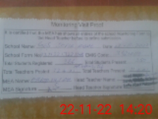 | Attendance Register | Head Teacher | MEA with School | Visit Proof |