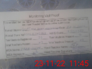 | Attendance Register | Head Teacher | MEA with School | Visit Proof |