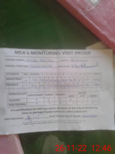 | Certified that this School was Inspected by the Undersigned MEA/DMO Today and the Information Stated Above is as Per Record. | |||||