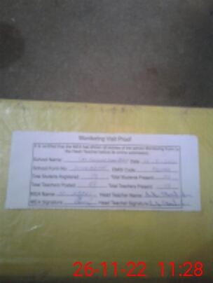 | Attendance Register | Head Teacher | MEA with School | Visit Proof |