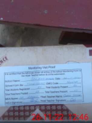 | Attendance Register | Head Teacher | MEA with School | Visit Proof |
