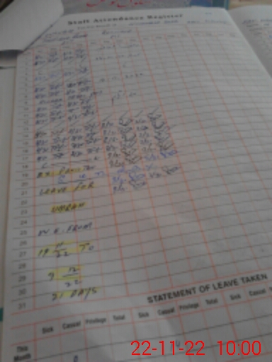 | CNIC | Full Name | Designation | R/C | Absence During Last Calender Month |