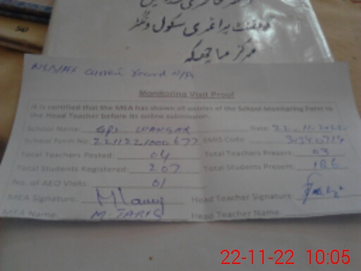 | Attendance Register | Head Teacher | MEA with School | Visit Proof |