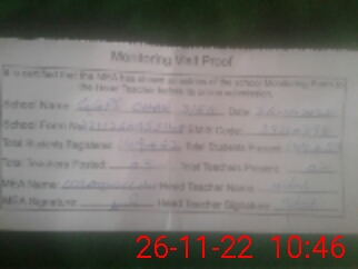 | Attendance Register | Head Teacher | MEA with School | Visit Proof |
