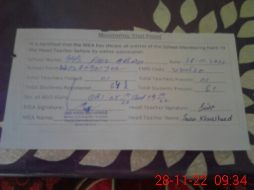 | EMIS Code: 31310520 | Name of School: GGPS FIAZ ABAD | |||