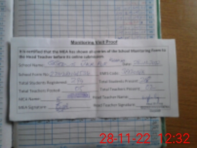 | Attendance Register | Head Teacher | MEA with School | Visit Proof |