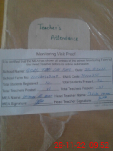 | Attendance Register | Head Teacher | MEA with School | Visit Proof |