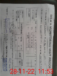 | Monitoring Date: 28-11-2022 | Start Time: 28-11-2022 11:05 AM | End Time: 28-11-2022 11:56 AM | Name of MEA: Sh**** Na**** | |