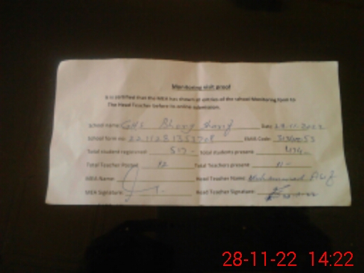 | EMIS Code: 31340053 | Name of School: GHS BHONG | |||