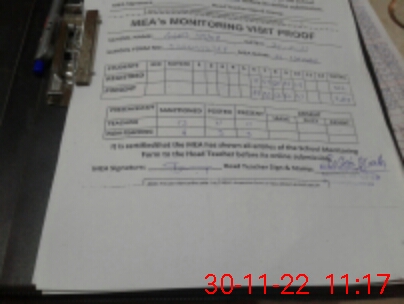 | Attendance Register | Head Teacher | MEA with School | Visit Proof |