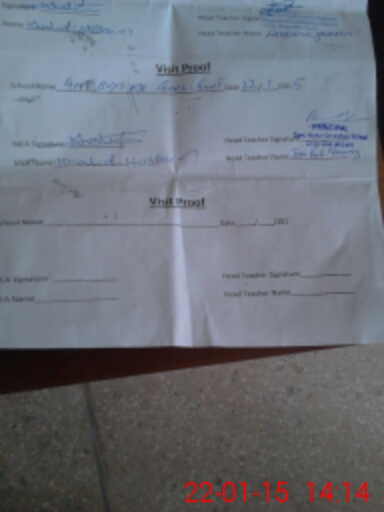 | Attendance Register | Head Teacher | MEA with School | Visit Proof |