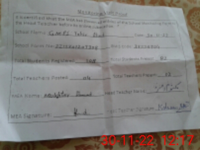 | EMIS Code: 33220704 | Name of School: GMPS TAHIR ABAD | |||