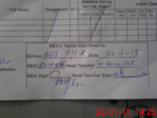 | Attendance Register | Head Teacher | MEA with School | Visit Proof |