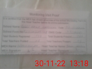 | Attendance Register | Head Teacher | MEA with School | Visit Proof |