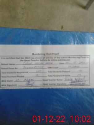 | Certified that this School was Inspected by the Undersigned MEA/DMO Today and the Information Stated Above is as Per Record. | |||||