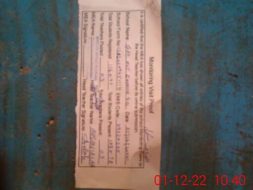 | Attendance Register | Head Teacher | MEA with School | Visit Proof |