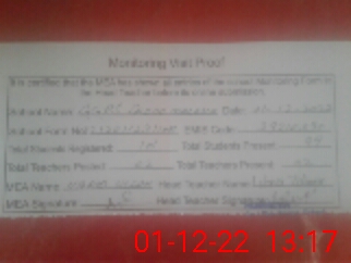 | Attendance Register | Head Teacher | MEA with School | Visit Proof |
