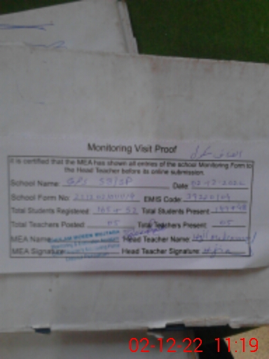 | EMIS Code: 39220104 | Name of School: GPS 53 SP | |||