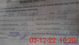 | Attendance Register | Head Teacher | MEA with School | Visit Proof |