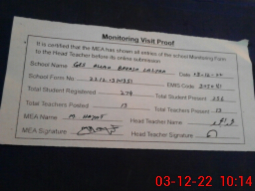 | EMIS Code: 31150161 | Name of School: GES ALLAH BAKASH LALEY KA | |||